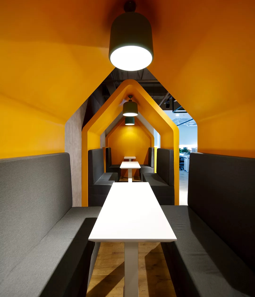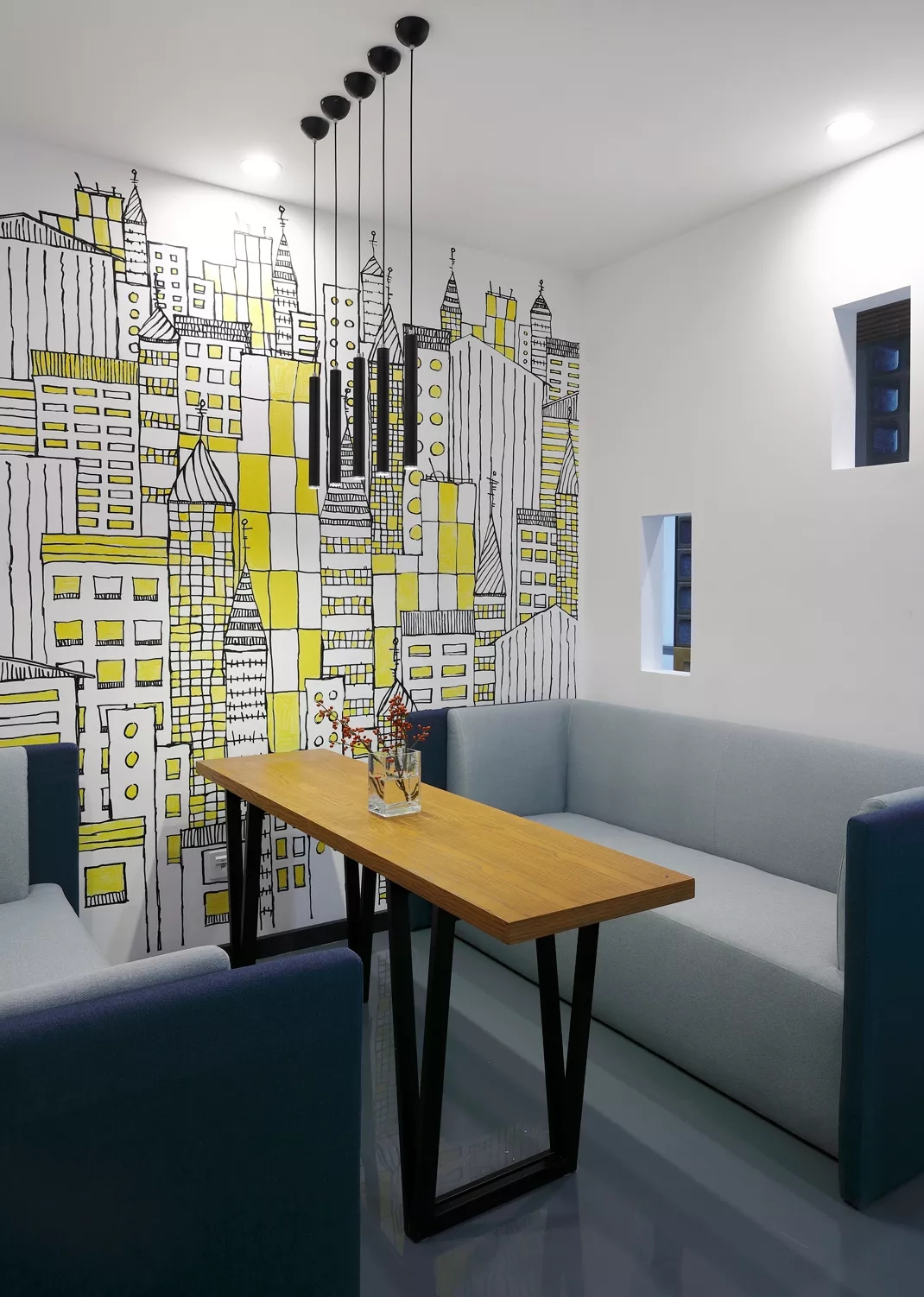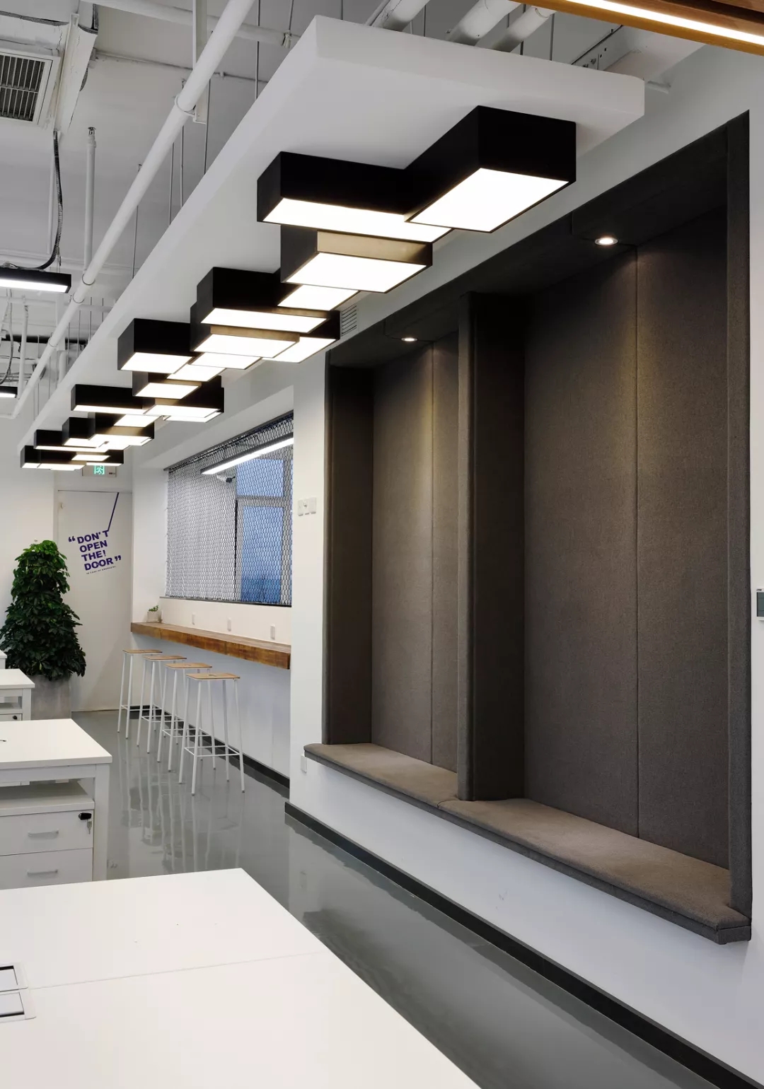 于是在這個項目中,F(xiàn)IVE SENSE以懷揣夢想和激情的年輕人為藍本,在有限的空間中預留足夠的公共區(qū),引入他們喜愛的生活場景,減少了多余的預留工位和傳統(tǒng)的封閉會議室。取而代之的是一連串有趣而具有多重實用性的中性空間。