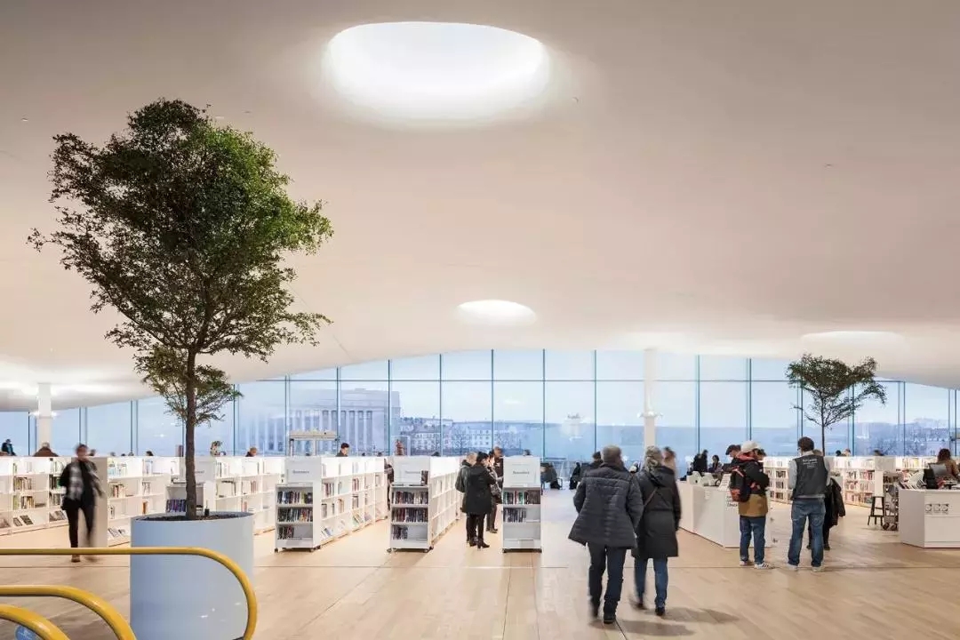 芬蘭的圖書館制度是全世界第一的。頌歌圖書館于2018年12月6日——芬蘭第101個獨(dú)立日,正式開放。從1998年正式提案、到后來的公開招標(biāo)、館名征集,到設(shè)計完工,花了20年。在2013年的國際公開設(shè)計招標(biāo)中,通過匿名評選,赫爾辛基的ALA建筑設(shè)計事務(wù)所勝出了。