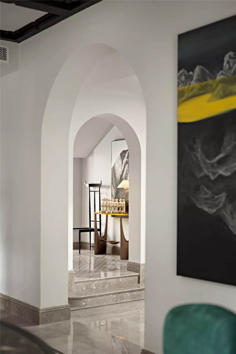 從建筑外觀到室內(nèi),拱門(mén)設(shè)計(jì)無(wú)疑是空間中最引人注目的亮點(diǎn),經(jīng)典的幾何線(xiàn)條在空間交匯處劃下瀟灑自由的一筆,破格又落定,促成雙空間的融合。皆因設(shè)計(jì)師黃全對(duì)細(xì)節(jié)的一絲不茍,每一個(gè)構(gòu)件都在美學(xué)態(tài)度的牽引下找到最合適的表現(xiàn)形式。