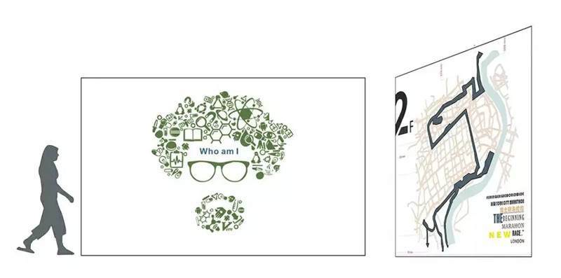 以上是本期課程第一個重點——環(huán)境圖形的內(nèi)容界定。它包括室內(nèi)的導視標識、一系列公司的文化展示,這兩塊內(nèi)容基本構(gòu)成了室內(nèi)環(huán)境圖形設計的設計內(nèi)容。