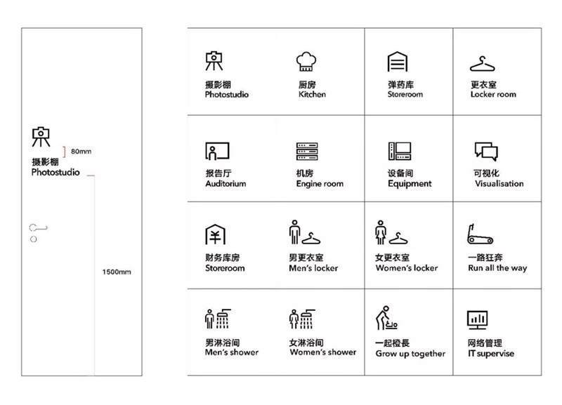 辦公室裝修內(nèi)的環(huán)境圖形設計不同于常規(guī)的室內(nèi)軟裝設計,它相比軟裝設計更偏向平面視覺,辦公室裝修內(nèi)的環(huán)境圖形設計內(nèi)容主要可以分為兩大類:第一類是包含了辦公室設計內(nèi)的導視標識系統(tǒng),例如門牌部門標識疏散指示消防標識設備間標識,甚至門、柜體的推拉指示等。