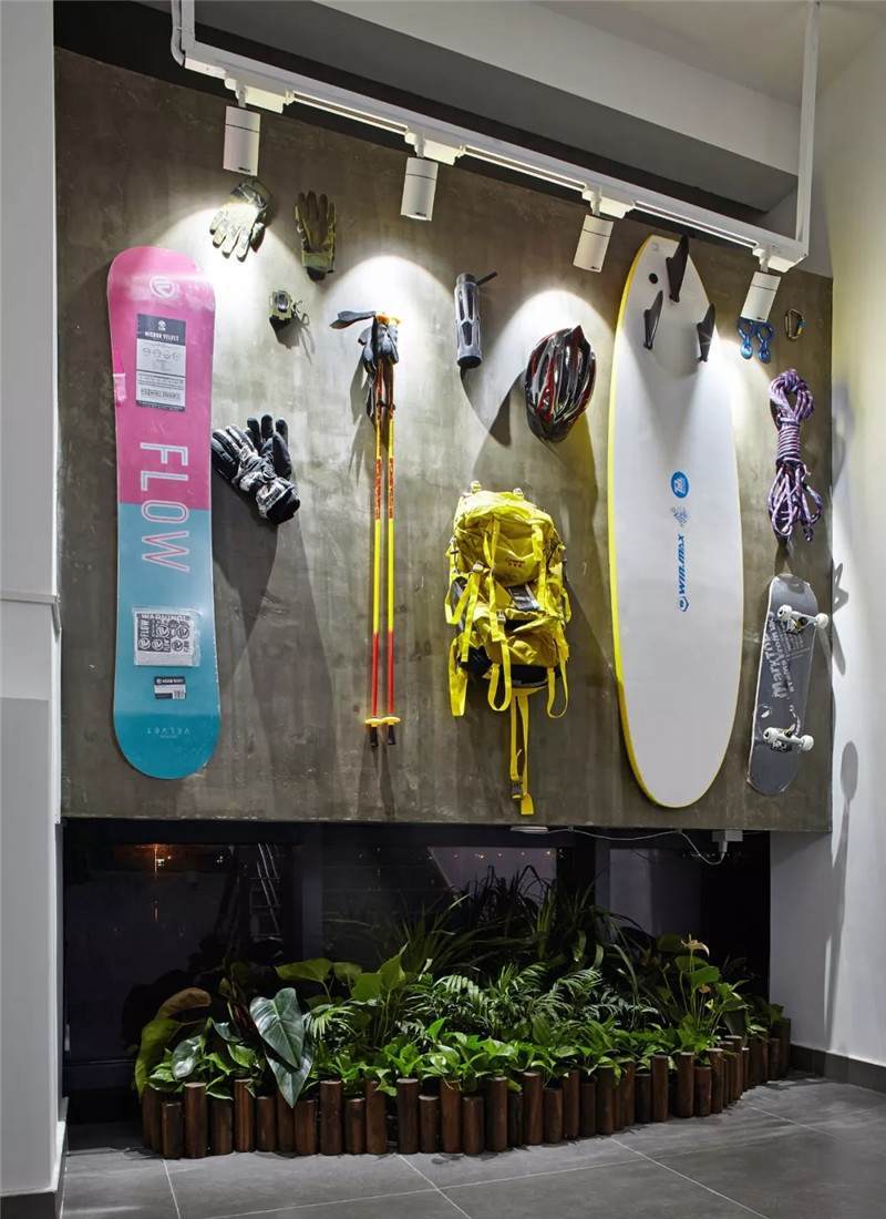 后期我們選用了一些戶外探險的運動裝備,包括有一些極限大賽的LOGO,作為裝飾裝在了墻上,能很好地凸顯科技運動公司的主題,視覺效果也非常好。以上是兩個相對完整的案例,接下來還有一部分比較分散的項目有可能沒有形成系列,但是也都有不同的特點。