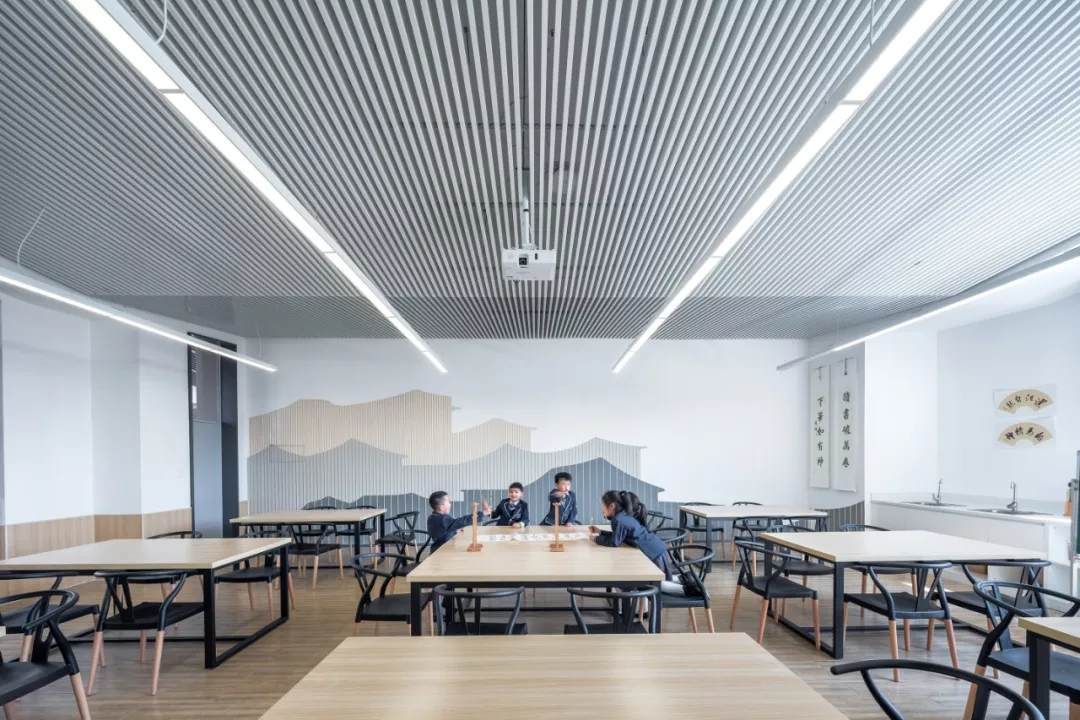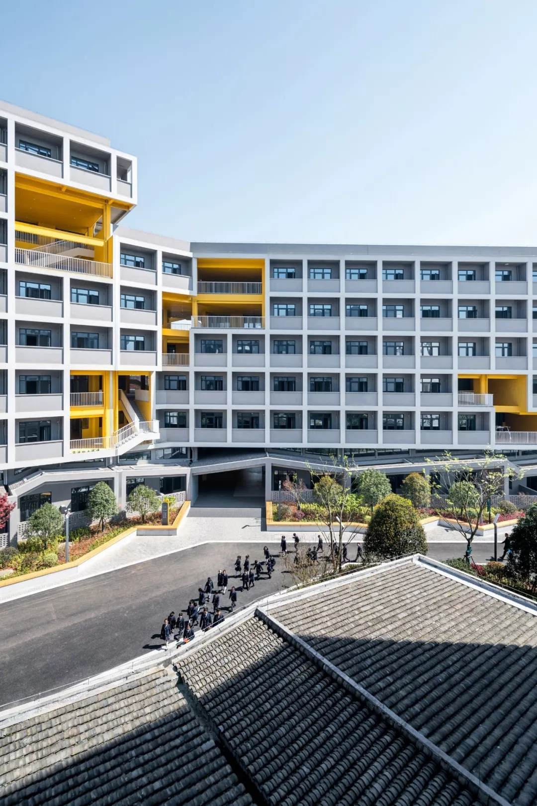 學(xué)校所在的城市義烏作為全球最大的小商品集散中心,被聯(lián)合國(guó)與世界銀行等權(quán)威機(jī)構(gòu)譽(yù)為世界第一大市場(chǎng)。在兼具本土根基與國(guó)際視野的大環(huán)境下,新世紀(jì)外國(guó)語(yǔ)學(xué)校同樣也有著傳統(tǒng)國(guó)學(xué)文化與國(guó)際化教學(xué)體系兼容并重的教育理念,那么建筑空間如何應(yīng)對(duì)理念所需的教學(xué)空間要求成為設(shè)計(jì)聚焦的又一個(gè)問題。