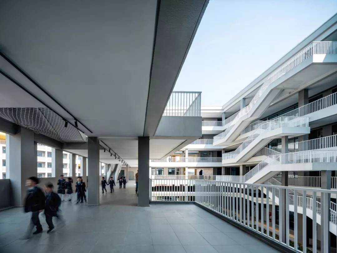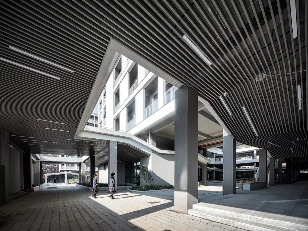 整個(gè)學(xué)校的概念策略、空間形態(tài)和場(chǎng)所定義描繪了一副全新生動(dòng)的體驗(yàn)式教學(xué)圖景,設(shè)計(jì)作為實(shí)現(xiàn)的媒介為義烏新世紀(jì)外國(guó)語(yǔ)學(xué)校的師生提供了更多的教育體驗(yàn)和可能性。而貫穿其中的設(shè)計(jì)聚焦點(diǎn):教育類空間在城市高密度環(huán)境中的微妙立場(chǎng)、國(guó)際化教學(xué)體系與傳統(tǒng)國(guó)學(xué)文化兼容并重的有機(jī)教學(xué)空間建筑空間、面向未來的傳統(tǒng)空間體驗(yàn)營(yíng)造,也是飛速城市化進(jìn)程中的中國(guó)所普遍面臨的問題,更是零壹城市一直以來并且會(huì)持續(xù)關(guān)注的高密度城市與教育空間問題的研究點(diǎn)。