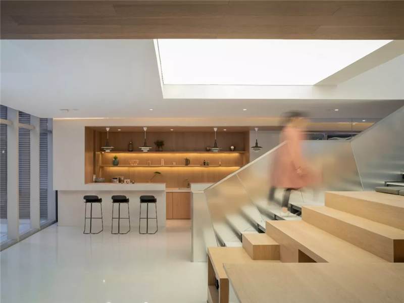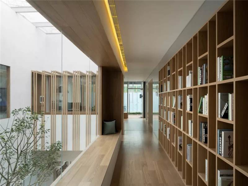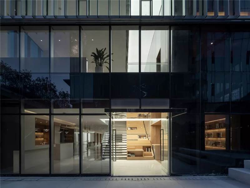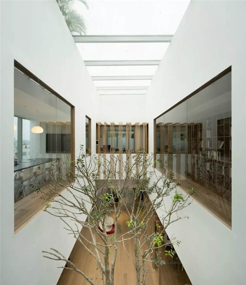 So in the space design, try to break theboundaries of indoor and outdoor spaces, and let the inner and outer spacescenes communicate with each other. The basement floor is the space fordiscussion and the outdoors is a sunken courtyard. The use of large glasspanels brings the courtyard landscape indoors. The staircase leading to thelobby is designed as a large staircase that opens to the courtyard, where youcan stay, relax and enjoy the view of the courtyard and the changes in lightand shadow. On the fourth and fifth floors, we designed a two-story rooflighting atrium going through the two stories with reference to the courtyardspace from the Lingnan Architecture – the skylight flows down from the top,spreads over the landscape tree on the atrium of the fourth floor, andoverflows in the space, creating an illusion that the interior is like anoutdoor courtyard.