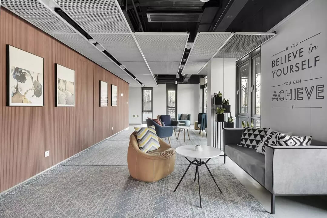 在空間劃分上,我們遵循城市綠色生態(tài)美學(xué),充分利用創(chuàng)新技術(shù)進(jìn)行模塊化設(shè)計(jì),將裝配式建造、節(jié)能低碳等許多新理念應(yīng)用到整個(gè)空間中去,將整體空間劃分成商務(wù)區(qū)、辦公區(qū)和休閑區(qū),具體到擁有獨(dú)立辦公室65個(gè),辦公工位464個(gè),會(huì)議室5個(gè),以及水吧、咖啡廳、休息艙、茶室、電話(huà)亭等共享區(qū),我們想要脫離傳統(tǒng)辦公空間的單調(diào)枯燥,讓一站式的休閑服務(wù)和辦公完美結(jié)合,觸達(dá)現(xiàn)代人內(nèi)心的深層需求,從而使整體設(shè)計(jì)方案在保持高品質(zhì)的同時(shí)做到高效、低成本。