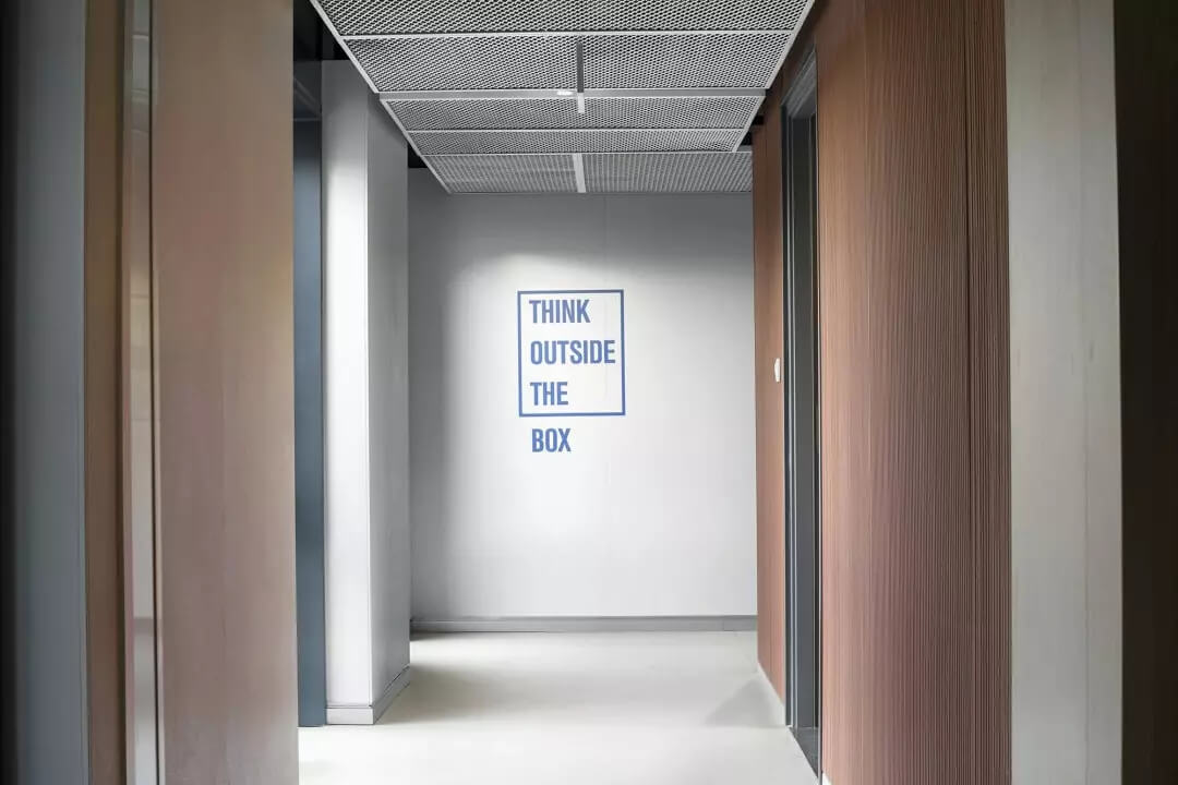 至于盒子以外的空間,我們想凝聚更多的人文藝術(shù)氣息,選擇較多地去鋪陳展示各種抽象的藝術(shù)線(xiàn)條和畫(huà)作,同時(shí)為了不失去生活氣息,各個(gè)角落選擇顏色比較跳躍的家居什物,讓它作為一個(gè)流動(dòng)的戶(hù)外廣場(chǎng),讓人可以自在穿行其中,偶爾停駐觀(guān)察,經(jīng)得住人聲鼎沸的喧擾,亦能提供心靈靜憩的安寧。在這里,大家認(rèn)真辦公、生活、盡情交流、分享,它就是一個(gè)安放綠意,有極高包容度的公共空間。
