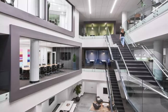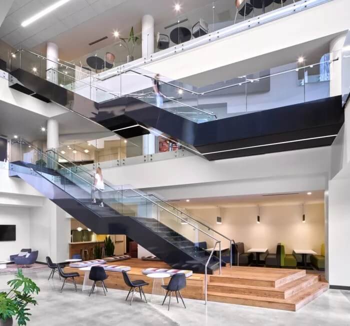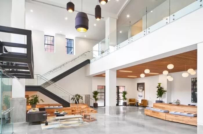 在整體美觀方面,3north剝離了裝飾性金屬制品,并將空間恢復(fù)為天然材料,干凈的線條和充足的自然光線。螺旋樓梯(一直是瓶頸交通的源頭)被拆除并簡化了形式和材料調(diào)色板。拋光混凝土地板和裸露的天花板為經(jīng)典,現(xiàn)代設(shè)計(jì)做出了貢獻(xiàn)。在整個(gè)過程中,該建筑向后退一步,將焦點(diǎn)放在本地藝術(shù)和手工藝上。這是一個(gè)為員工本人打造的空間,無論員工的工作方式,當(dāng)前的心情或聚會的方式如何,他們都可以高效地工作,而且最重要的是可以激發(fā)靈感。