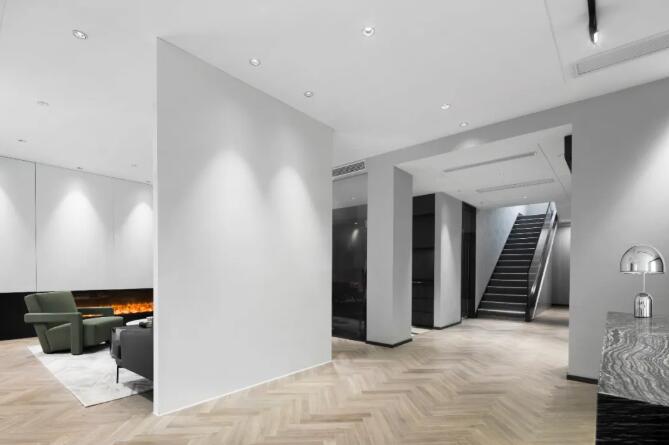 室內(nèi)為符合當(dāng)代辦公需求,定位現(xiàn)代簡約時尚的風(fēng)格,白色和黑色的主色調(diào),中間銜接色的灰色調(diào),將一至三樓空間一氣呵成,沒有多余的修飾,打造出一個宜居、充滿藝術(shù)氣質(zhì)的住宅式辦公環(huán)境。
