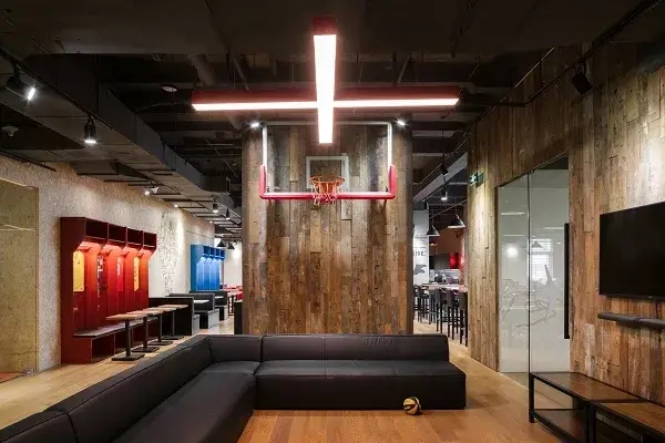 以體育為主的辦公室也隨處可見顯著的運(yùn)動基因:1比1籃球架、懸掛著各類巨星簽名球衣的辦公座椅、德約科維奇的畫像、還有員工最愛的乒乓房。