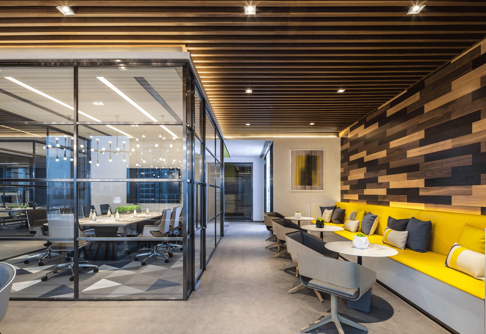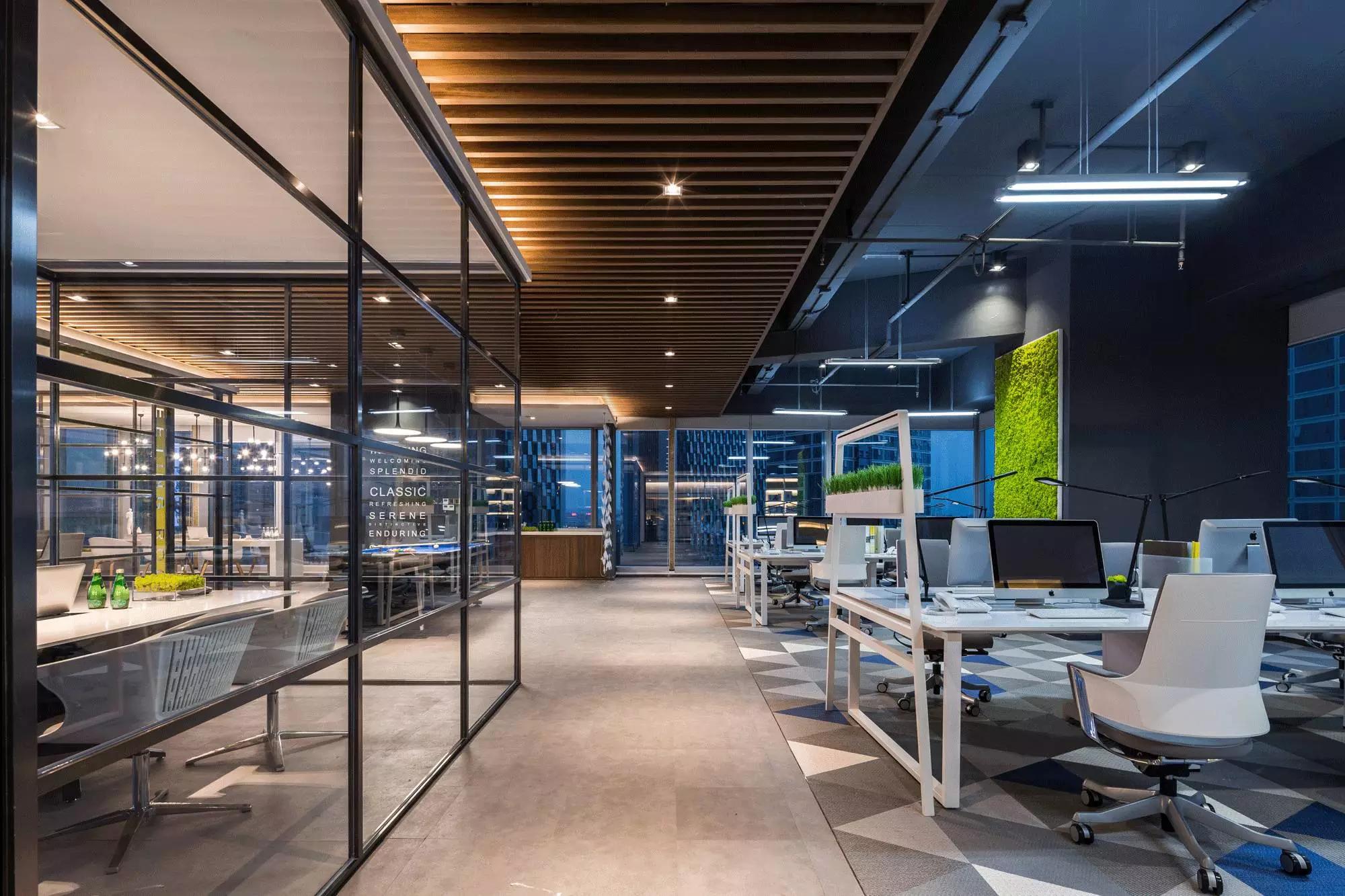 采納了“自由”空間慣用的開放式設(shè)計,拋棄了沉悶的障礙物、墻壁,僅預(yù)留必要的墻體,并用少數(shù)玻璃分割不同的空間,多人會議室、小組會議室的靈活設(shè)計,動線連貫流暢,充分滿足了現(xiàn)代科技空間“樂活、高效”的辦公需求。