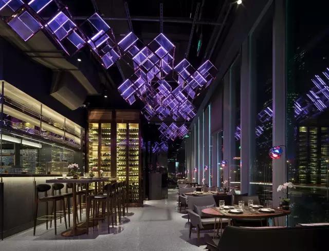 深夜,位于北京國貿中心attabj餐吧,猶如一只盛著色彩斑斕酒體的高腳杯,晶瑩的冰塊由于杯體的搖晃與酒融為一體,被酒一遍一遍的浸染,色彩終在空間中流淌開來,空氣里彌漫著微醺的氣息。