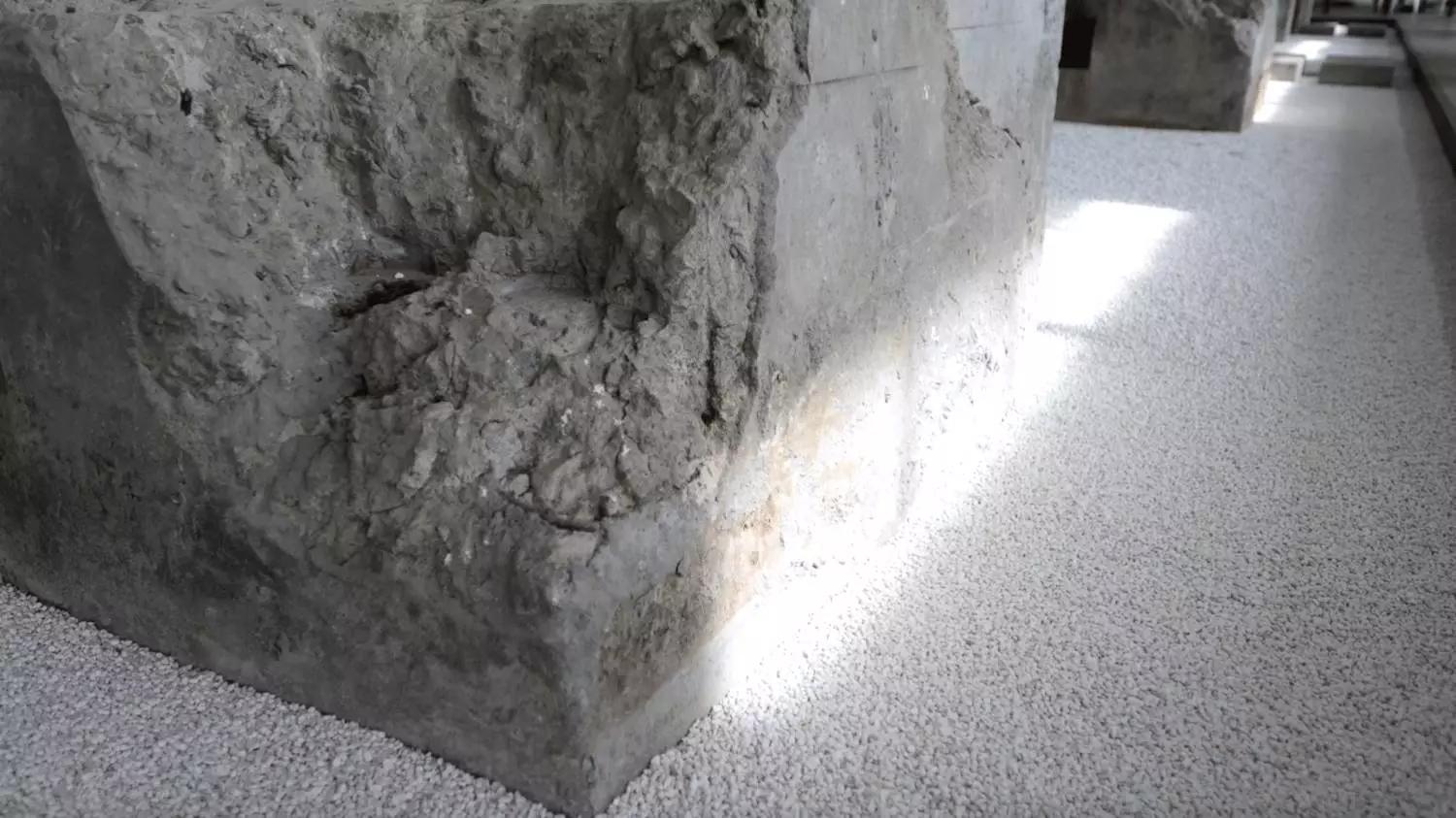 天窗的陽光投射在舊石墩上,光隨時間緩慢流淌,從晨曦到夕陽日復(fù)一日的撫摸石墩的肌理。人們彷彿可以感知到這片土地的過往,一天一年一個世紀(jì),或者更遠(yuǎn)。