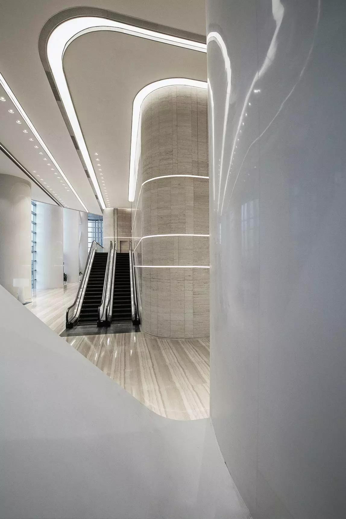 作為中原第一高樓,在追求更為國際化的,突顯空間的塑造與氣質(zhì)呈現(xiàn)的同時(shí),旨在整體而多層次的展現(xiàn)“地標(biāo)”這一屬性。位于新絲路-核心樞紐的鄭州在延續(xù)了建筑黃河之水奔騰回轉(zhuǎn)立意之外,設(shè)計(jì)師以前瞻視野,結(jié)合城市規(guī)劃發(fā)展的更高格局,兼顧科技創(chuàng)新概念的融入,將水之形立體化與科技化的表達(dá),以一種獨(dú)特精神呈現(xiàn)空間之美。
