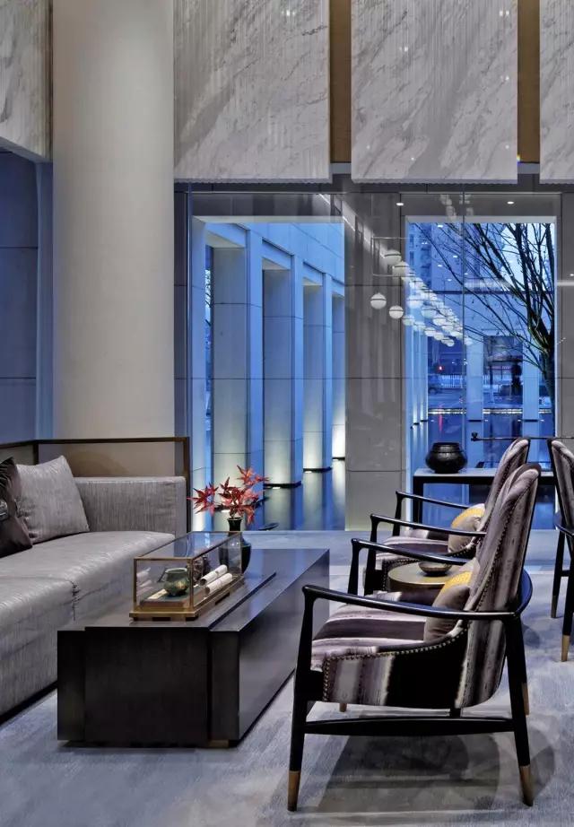少幾分濃墨重彩,多幾分雅致清寧,灰色系恰好這樣不偏不倚,中正古典,為空間的雅致奠定了基礎。時不時的再加點黃色的點綴,大氣沉穩(wěn)不失生機活力。寫實的拱宸橋畔風景圖和柔軟似水波紋的大面積地毯剛柔并濟,虛實對比,詮釋著空間內成竹在胸的東方意境。