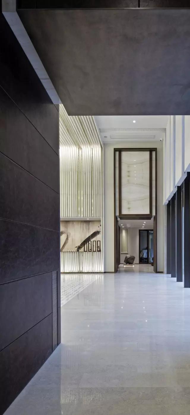 穿過充滿東方韻味的水中步道,在移步易景的氛圍里,不自覺地調慢身心節(jié)奏,悠然步入接待中心。設計師不拘泥于傳統(tǒng)石材的形體結構和飾面方式,大膽創(chuàng)新地更改重構。