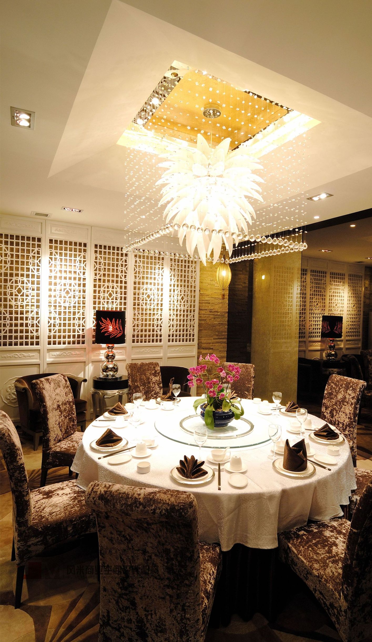 現(xiàn)代人的價(jià)值觀是一個(gè)在顛覆中發(fā)展的時(shí)期,人們的觀念在顛覆,消費(fèi)的觀念亦在成熟中顛覆。所以在這次設(shè)計(jì)中我們要通過(guò)另一種美學(xué)設(shè)計(jì)手法再一次顛覆人們的審美價(jià)值觀。在設(shè)計(jì)中空間內(nèi)以超出常規(guī)的比例關(guān)系的形態(tài)來(lái)表露意識(shí)形態(tài)。在材料排布上以非慣性的處理手法來(lái)獲得人們對(duì)新形餐飲空間的認(rèn)知,在色彩運(yùn)用上以單體空間的色相統(tǒng)一來(lái)刺激人們對(duì)空間的色彩印象,在家具的造配上追求戲劇化的高度,奢華夸張的概念。使空間在整體上達(dá)到一種戲劇化的舞臺(tái)效果,讓人們游走其中產(chǎn)生一種非常規(guī)概念的心理感受,從而感受到空間的美感。